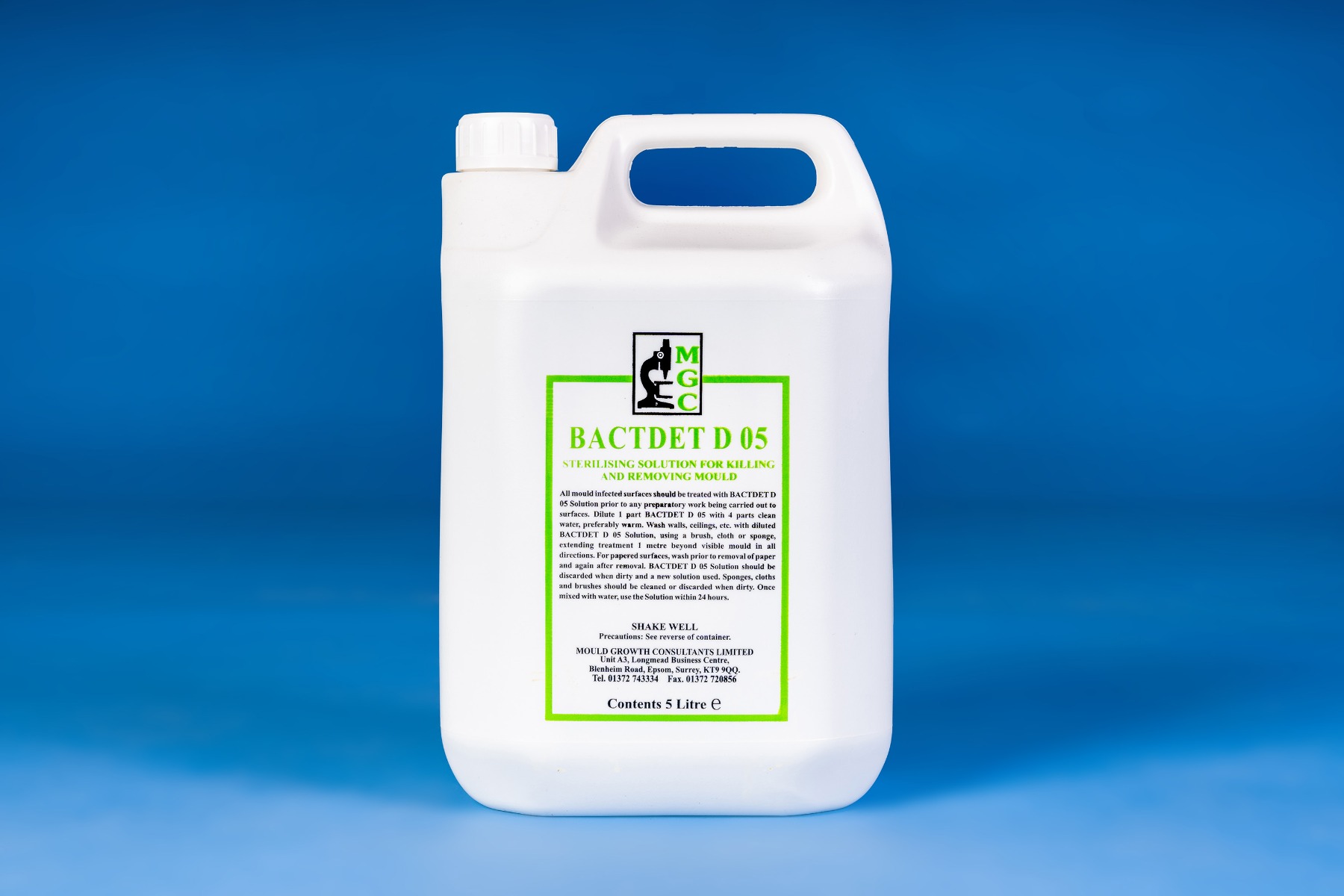 Wash down mould infected surfaces with BACTDET D 05 diluted with warm water using a brush, sponge or cloth. Extend treatment one metre in all directions beyond all visible signs of infection. When the solution becomes dirty make up a fresh one. Coverage must not exceed 10 square metres per diluted litre. Allow to dry.